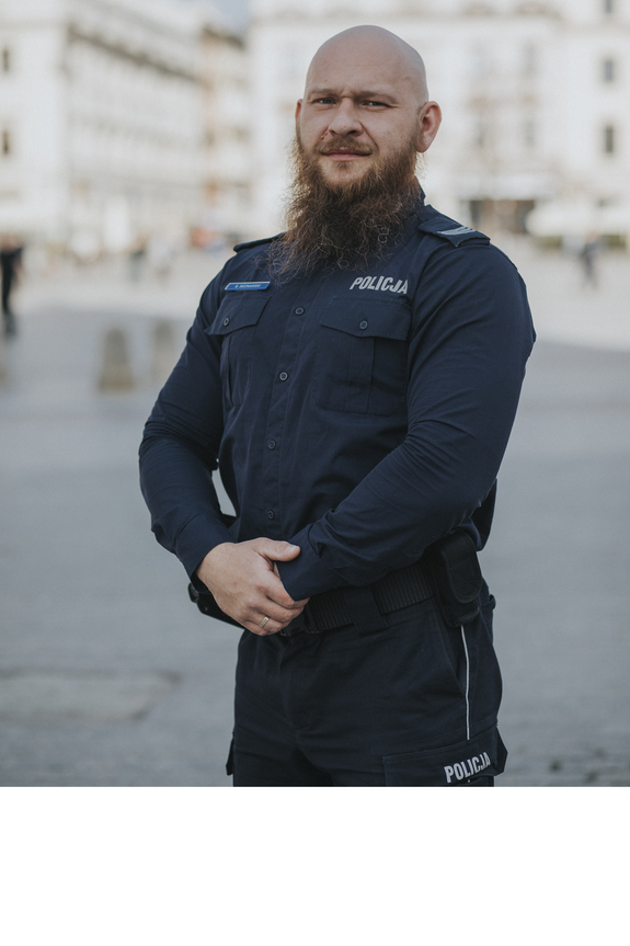 Sierż. szt. Przemysław Tomasik od 3 lat pełni służbę jako dzielnicowy w Komisariacie Policji VII w Krakowie.