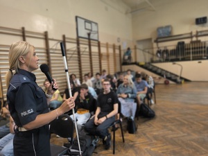 W poniedziałek, 8 września br. policjantki Wydziału Ruchu Drogowego Komendy Miejskiej Policji w Krakowie przeprowadziły prelekcję dla uczniów i podopiecznych Zespołu Szkół i Placówek pn. „Centrum dla Niewidomych i Słabowidzących” w ramach kampanii Bezpieczna droga do szkoły”. Funkcjonariuszki zwracały uwagę na podstawowe zasady ruchu drogowego, które każdy uczestnik ruchu – zarówno pieszy, jak i kierujący – powinien znać i stosować. Z uwagi na specyfikę placówki, policjantki przypomniały przepisy wynikające z art. 42 ustawy Prawo o ruchu drogowym, zgodnie z którym osoba niewidoma poruszająca się po drodze ma obowiązek używania białej laski. Ten charakterystyczny element nie tylko informuje innych uczestników ruchu o niepełnosprawności pieszego, ale także zwiększa jego rozpoznawalność w ruchu drogowym.