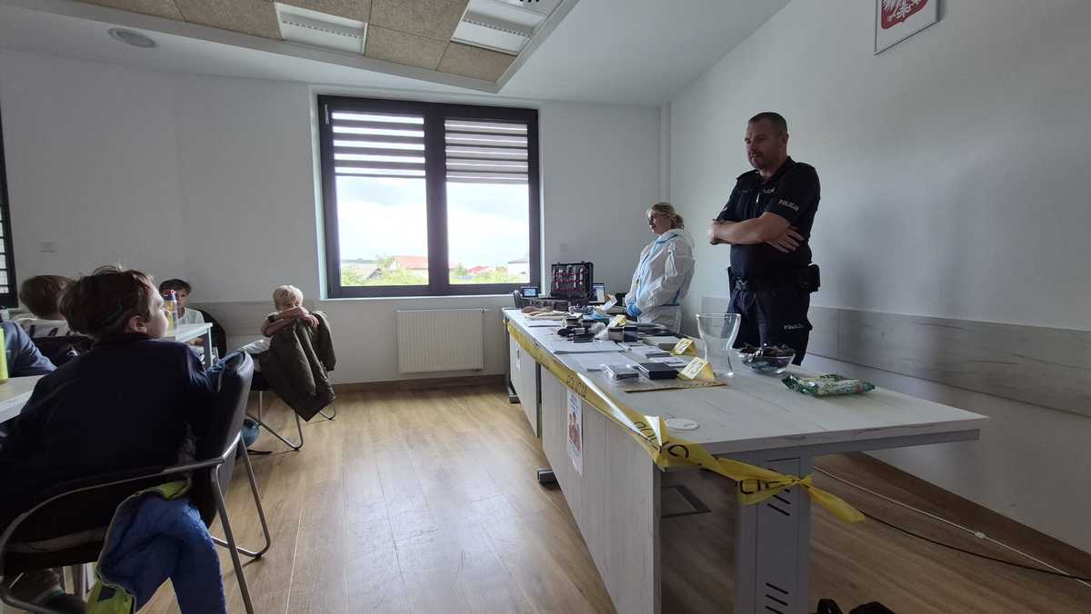 Wśród atrakcji jakie czekały na gości i ich opiekunów znalazło się również spotkanie z technikiem kryminalistyki, który pomógł wykonać im pamiątkowe odbitki linii papilarnych. Na policyjnym parkingu na dzieci czekał radiowóz.