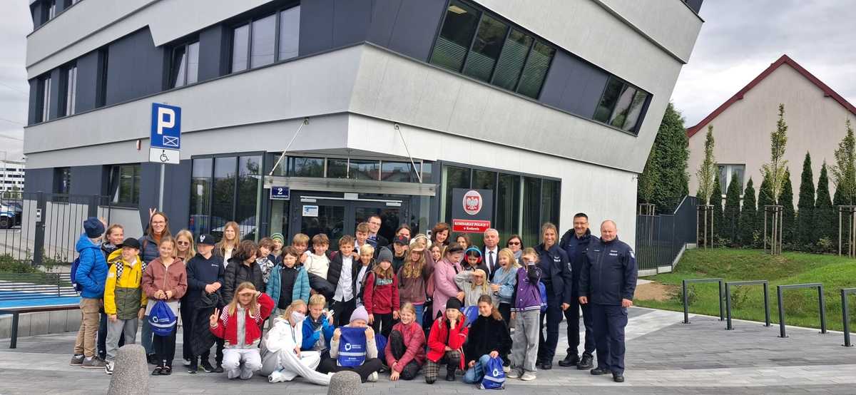 26 września br. uczniowie klas piątych ze Społecznej Szkoły Podstawowej nr 7 odwiedzili Komisariat Policji V w Krakowie. Dzieci spotkały się z kierownictwem jednostki, z dzielnicowym i technikiem kryminalistyki. Goście i ich opiekunowie mogli zobaczyć policyjny radiowóz, a na pamiątkę otrzymały odblaski.