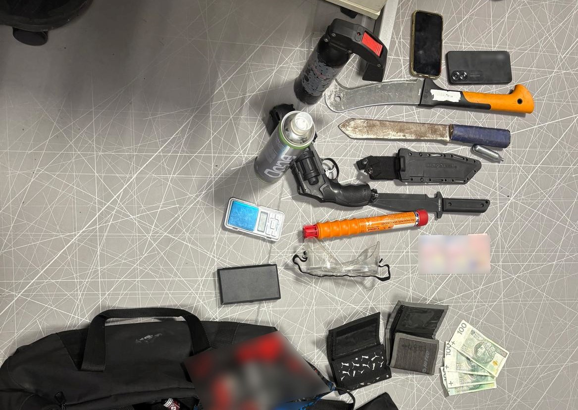 22-letni kierowca i 18-letni pasażer zostali sprawdzeni w policyjnych systemach, jak się okazało starszy z nich nie posiadał prawa jazdy. Mężczyzn poddano również badaniu trzeźwości, które wykazało, że 18-latek miał 0,3 promila alkoholu w organizmie. Ponadto w ich samochodzie policjanci znaleźli i zabezpieczyli m.in. emblematy pseudokibicowskie, kominiarki, ostre przedmioty i pistolet gazowy, który został przekazany do analizy balistycznej. Jak ustalili funkcjonariusze mężczyźni są powiązani ze środowiskiem pseudokibiców jednego z krakowskich klubów sportowych. 22-latek i jego kompan zostali zatrzymani, a następnie przewiezieni do Komisariatu Policji V w Krakowie.