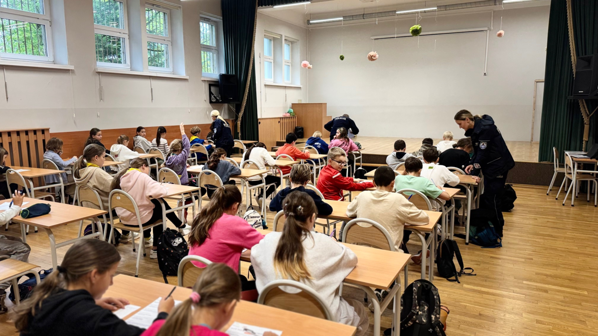 Policjanci Wydziału Ruchu Drogowego KMP Kraków przeprowadzili zajęcia oraz egzamin teoretyczny oraz praktyczny poprawkowy na karę rowerową w dwóch Krakowskich szkołach