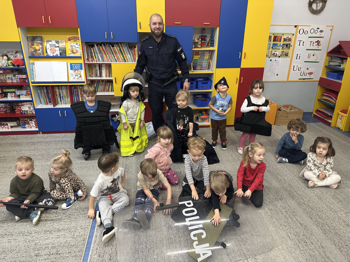 #DzielnicowyBliżejNas. Zajęcia o bezpieczeństwie, prowadzone przez policjantów Komisariatu Policji I w Przedszkolu „Pod Wawelem”