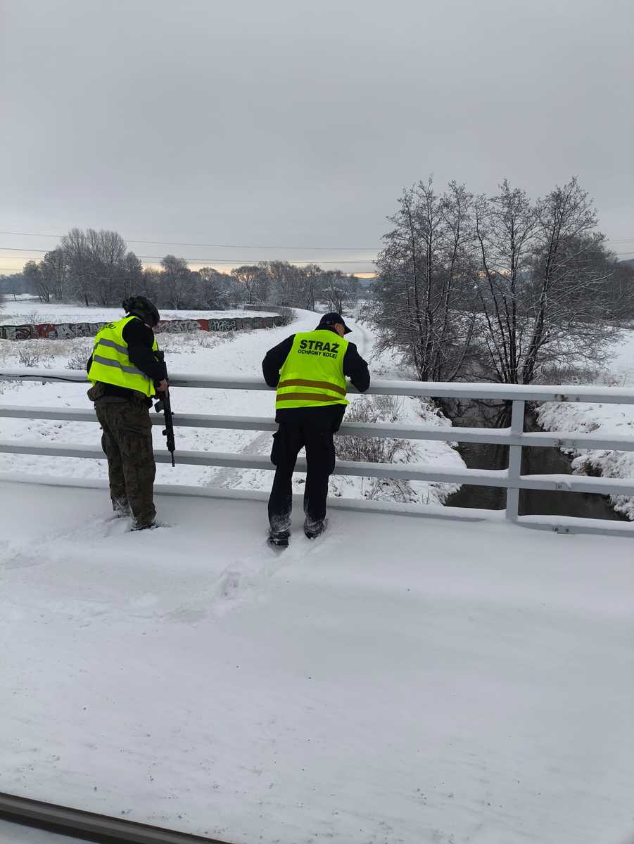 Wczoraj, na obszarach kolejowych w Olszanicy, wspólne patrole Policji, Straży Ochrony Kolei oraz Wojsk Obrony Terytorialnej dbały o bezpieczeństwo i płynność ruchu kolejowego w związku z wprowadzeniem trzeciego stopnia alarmowego CHARLIE. Mundurowi kontrolowali najważniejsze odcinki torowisk oraz nadzorowali, by na teren nasypów, wiaduktów i urządzeń sterowania ruchem nie wchodziły osoby nieuprawnione. Funkcjonariusze pomimo trudnych warunków pogodowych, działają w sposób skoordynowany, wymieniając się informacjami, tak by zminimalizować ewentualne zagrożenia i zapewnić porządek publiczny.