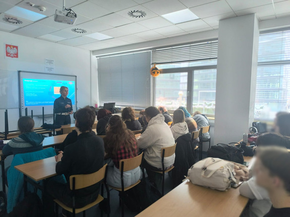 8 stycznia br., w Niepublicznym Liceum przy ul. Lublańskiej w Krakowie odbyło się spotkanie profilaktyczno-edukacyjne z udziałem funkcjonariuszy Wydziału Ruchu Drogowego Komendy Miejskiej Policji w Krakowie. Wydarzenie zostało zorganizowane z myślą o młodzieży szkół ponadpodstawowych i miało na celu zwiększenie świadomości uczniów w zakresie bezpieczeństwa w ruchu drogowym.