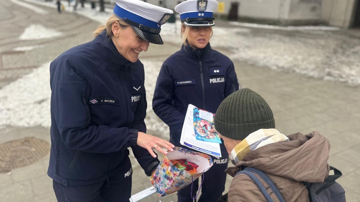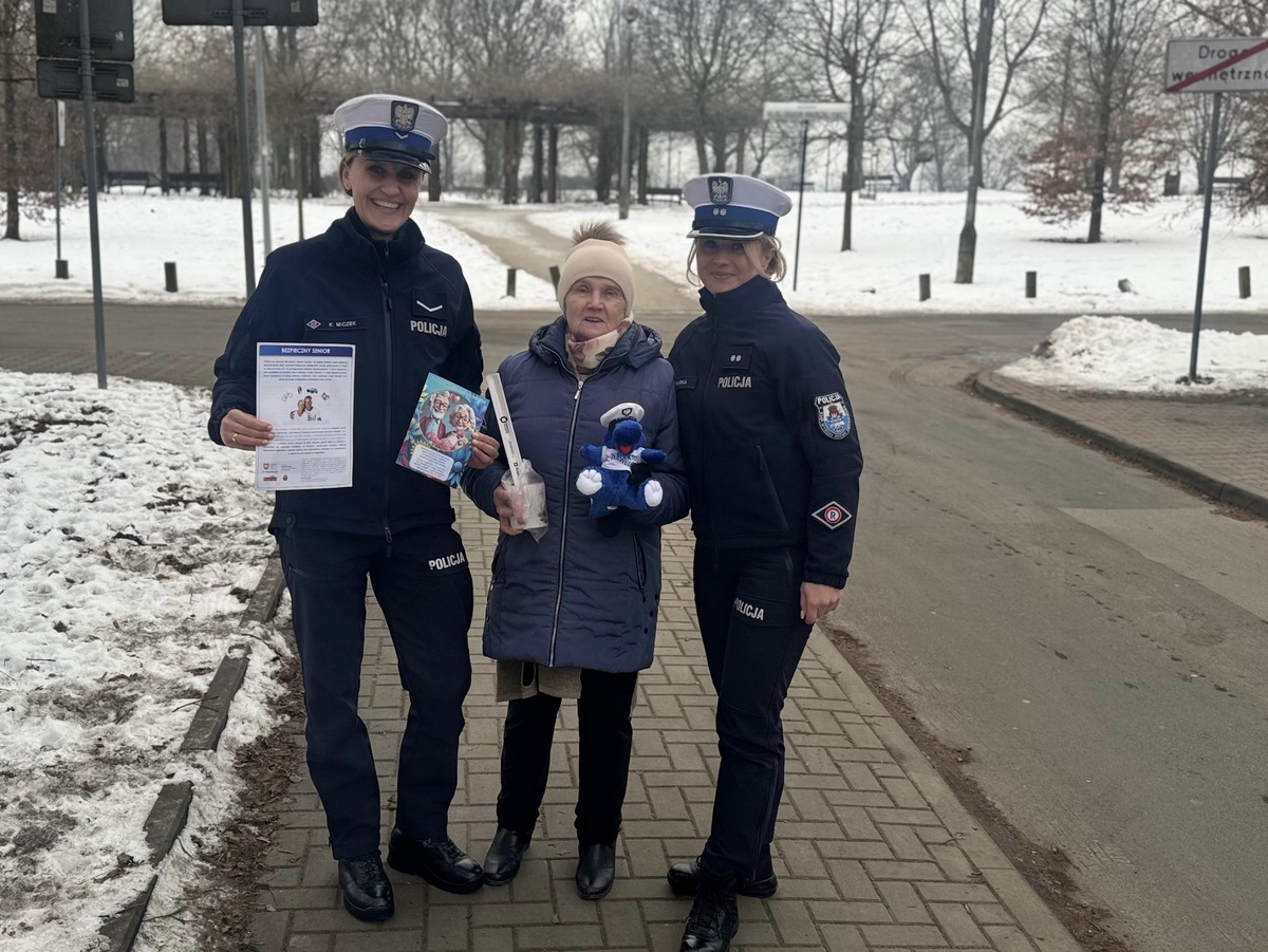 Policjanci krakowskiej drogówki przeprowadzili akcję profilaktyczną z okazji Dnia Babci i Dnia Dziadka