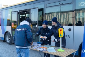 Na miejscu zorganizowano mobilne stanowisko profilaktyczne, przy którym policjanci WRD prowadzili bezpośrednie rozmowy z pasażerami. Uczestnicy wydarzenia mieli możliwość wejścia do autobusu, zapoznania się z jego wyposażeniem oraz porozmawiania zarówno