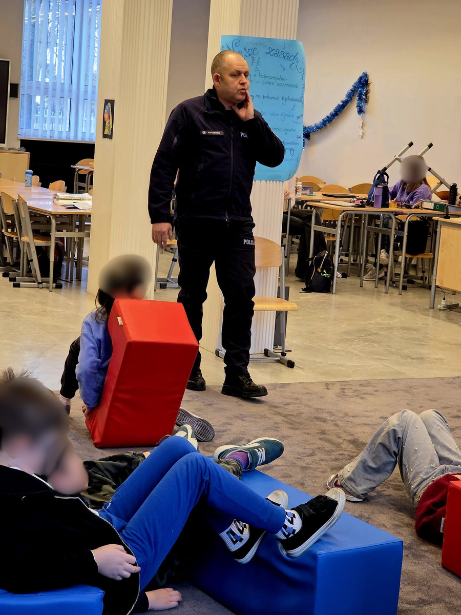 o konieczności przechodzenia przez jezdnię tylko w miejscach do tego wyznaczonych. Zasygnalizowali konieczność pełnego skupienia uwagi na otoczeniu, podczas korzystania z przejść dla pieszych, omawiając ryzyko wynikające z korzystania z telefonów komórkowych podczas przekraczania jezdni. Policjanci przekazywali również informacje o zagrożeniach, które mogą pojawić się podczas zimowych zabaw na świeżym powietrzu. Najmłodsi wspólnie z funkcjonariuszami wskazali jakie niebezpieczeństwa może nieść za sobą jazda na sankach lub łyżwach w pobliżu ruchliwych ulic.