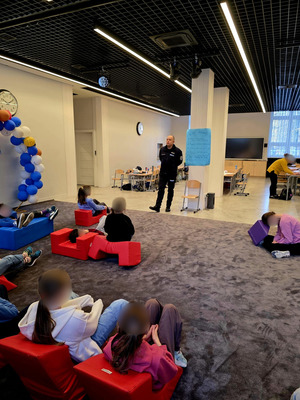 2 lutego br. uczestnicy półkolonii organizowanej na Osiedlu Uroczym wzięli udział w spotkaniu edukacyjnym z funkcjonariuszami Wydziału Ruchu Drogowego Komendy Miejskiej Policji w Krakowie. Tematem spotkania było bezpieczeństwo dzieci i młodzieży podczas ferii zimowych.