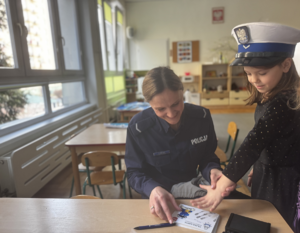 Przedszkolaki aktywnie uczestniczyły w prelekcji. Dzieliły się swoja wiedzą i zadawały nurtujące ich pytania, co świadczy o dużym zaangażowaniu oraz świadomości zasad bezpieczeństwa. Na zakończenie, każde z uczestniczących dzieci otrzymało tematyczne kolorowanki związane z ruchem drogowym oraz elementy odblaskowe, które pozwolą utrwalić zdobytą wiedzę.