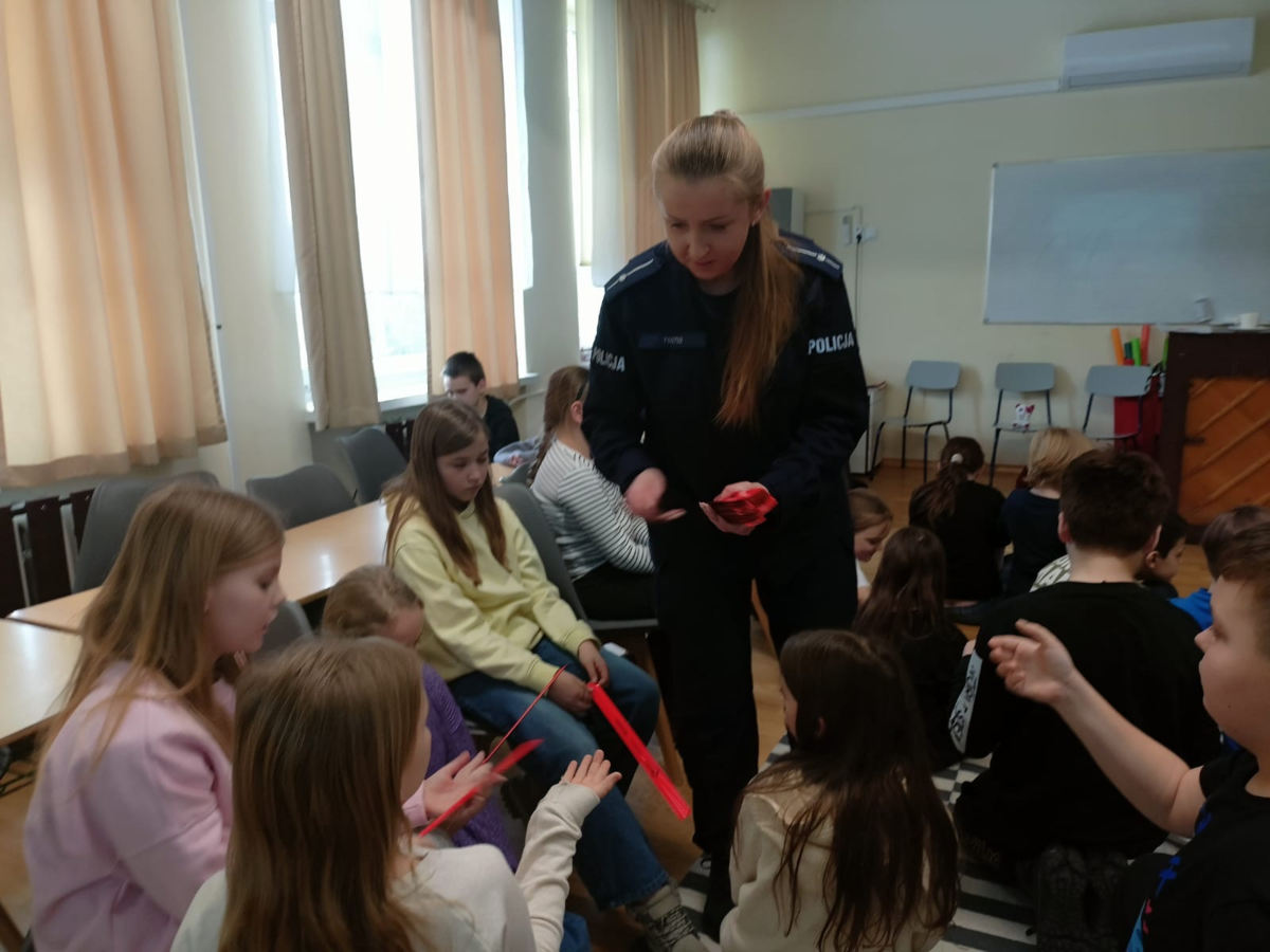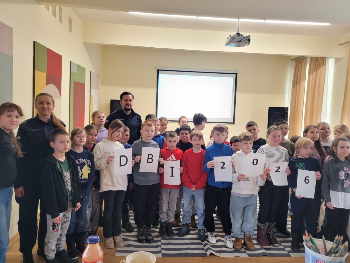 Pierwsze ze spotkań zrealizowane zostało dla uczniów klas 3 w związku z Dniem Bezpiecznego Internetu, który w roku 2026 przypadał na 10 lutego, ale wydarzenia edukacyjne i kulturalne w ramach tej inicjatywy realizowane będą aż do końca marca. Dzień Bezpiecznego Intenrnetu to inicjatywa, która ma na celu propagowanie działań na rzecz bezpiecznego dostępu dzieci i młodzieży do zasobów internetowych. Policjanci za pomocą prezentacji przybliżyli uczniom, jak dbać o własne bezpieczeństwo w sieci i odpowiedzialnie korzystać z cyfrowego świata. Uczestnicy spotkania dowiedzieli się także od kiedy i z czyjej inicjatywy obchodzony jest dzień bezpiecznego internetu, a na koniec spotkania otrzymali do rozwiązania test wiedzy z omawianej tematyki. Dla osób, które poradziły sobie z rozwiązaniem zadania najlepiej przewidziane były nagrody z logo Projektu „Zagrożenia w Sieci – profilaktyka, reagowanie”.
