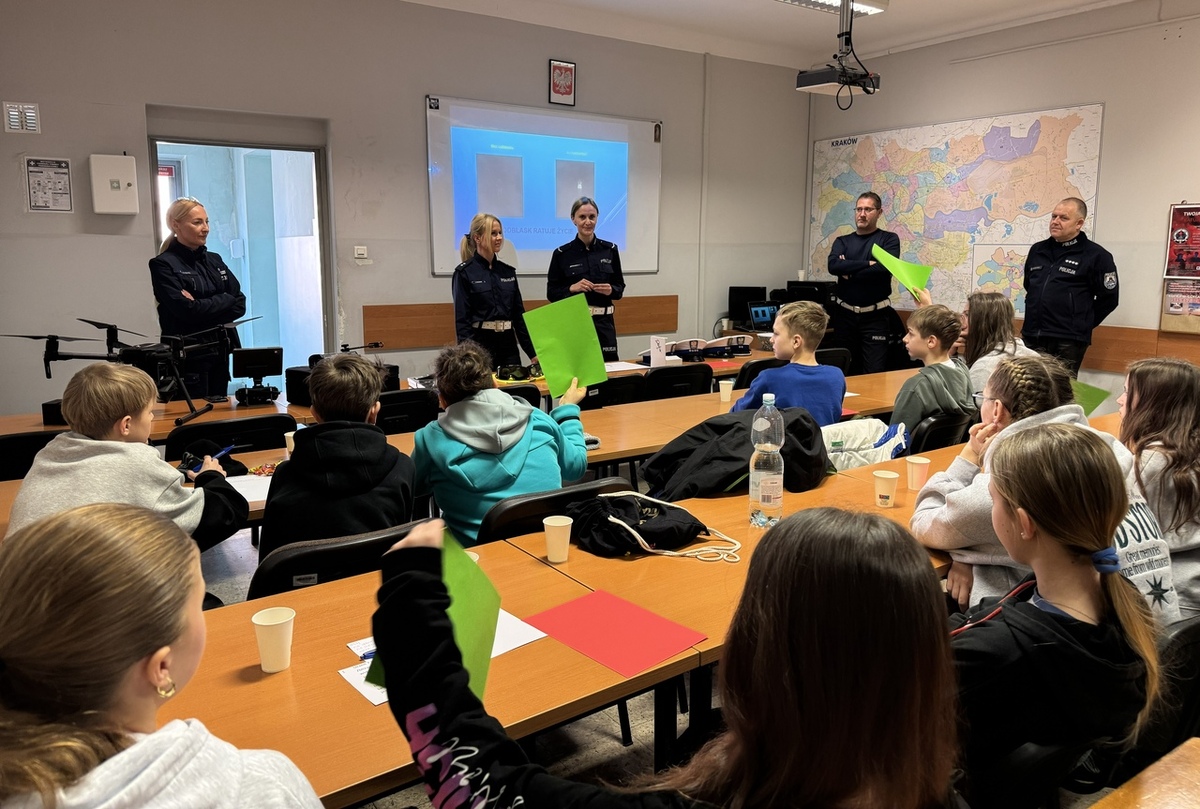 W minioną środę, w ramach kampanii, w Komendzie Miejskiej Policji w Krakowie odbyły się prelekcje i warsztaty dla uczniów siódmych klas ze Szkoły Podstawowej nr 54 oraz nr 26. Spotkanie zorganizowali funkcjonariusze z Wydziału Prewencji, którzy przeprowadzili wykłady i czuwali nad młodzieżą, która niemal cały dzień spędziła w siedzibie krakowskiej Policji. W pierwszej części funkcjonariusze z Wydziału Prewencji Komendy Miejskiej Policji w Krakowie opowiedzieli słuchaczom m.in. o odpowiedzialności prawnej nieletnich, przestrzegali jak nie stać się ofiarą przestępstwa, omówili czym jest mowa nienawiści oraz jakie zagrożenia niesie z sobą cyberprzemoc. Mundurowi podkreślali, że wybory i decyzje, jakie podejmują dziś młodzi ludzie będą miały realny wpływ na ich przyszłość.