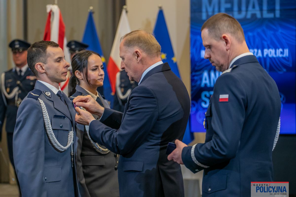 Wczoraj Minister Spraw Wewnętrznych i Administracji Marcin Kierwiński wręczył 76 policjantkom i policjantom medale im. podkomisarza Policji Andrzeja Struja. Odznaczenie przyznawane jest funkcjonariuszom Policji, którzy z narażeniem własnego zdrowia i życia, ratują innych. Wśród nagrodzonych znaleźli krakowscy policjanci- sierż. Edyta Kęskowicz oraz sierż. Dawid Cholewa. Funkcjonariusze z Komendy Miejskiej Policji w Krakowie, którzy w ubiegłym roku uratowali seniorki z płonącego budynku. W spotkaniu uczestniczył również Komendant Główny Policji gen. insp. Marek Boroń, który podziękował policjantom za ich postawę i odwagę, dającą świadectwo najwyższej wartości stanowiącej fundament polskiej Policji.