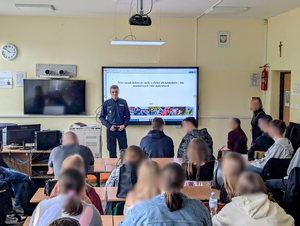 1 kwietnia br. na os. Spółdzielczym w Krakowie odbyło się spotkanie które, poprowadził nadkom. Łukasz Kubas – Zastępca Komendanta Komisariatu Policji VIII w Krakowie. W trakcie prelekcji omówił strukturę i zadania Policji, a także przybliżył specyfikę pracy w różnych pionach służby – od prewencji, przez pion kryminalny, po wyspecjalizowane jednostki. Uczniowie mogli dowiedzieć się, jak wygląda codzienna służba funkcjonariuszy oraz jakie możliwości rozwoju zawodowego oferuje formacja.