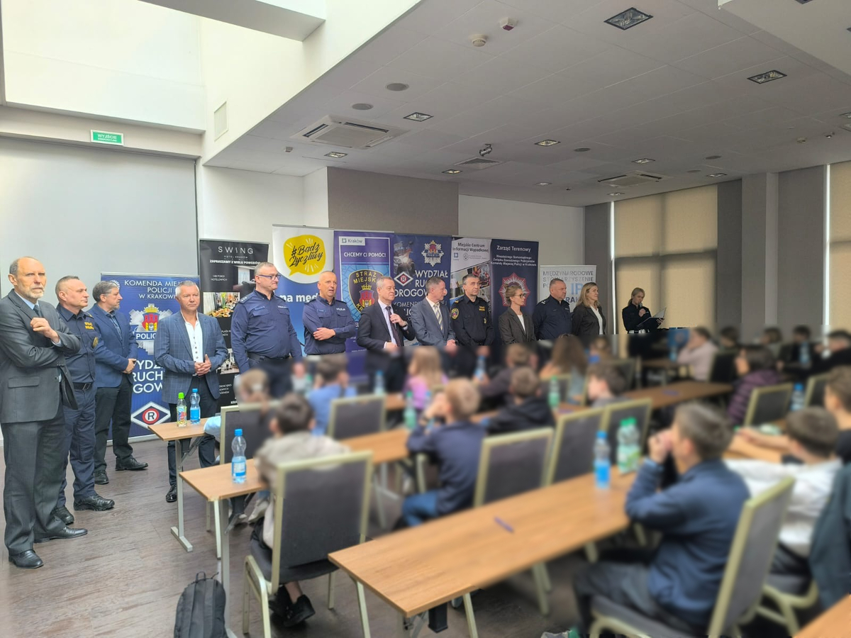 Uroczyste rozpoczęcie turnieju odbyło się w sali konferencyjnej Hotelu Swing przy ul. Dobrego Pasterza. Naczelnik Wydziału Ruchu Drogowego KMP w Krakowie, podinsp. Tomasz Jemczura pogratulował uczniom zakwalifikowania się do turnieju i pochwalił zaangażowanie oraz chęć zdobywania wiedzy. Naczelnik życzył uczestnikom dobrej zabawy oraz powodzenia w rywalizacji, a następnie podziękował nauczycielom, którzy przygotowali uczniów do udziału w turnieju, poświęcając swój czas i wspierając młodzież na każdym etapie przygotowań.