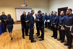 Na wyższe stopnie służbowe mianowani zostali policjanci, którzy odbyli szkolenie zawodowe podoficerskie oraz szkolenie zawodowe aspiranckie. Łącznie awansowanych zostało 24 funkcjonariuszy z Komendy Miejskiej Policji w Krakowie i podległych jej komisariatów, z czego 16 otrzymało stopień sierżanta, a 8 stopień aspiranta. Uroczystość rozpoczął Komendant Miejski Policji w Krakowie, który przywitał wszystkich zgromadzonych, gratulując ukończenia szkoleń, które podnoszą kompetencje funkcjonariuszy. Jak podkreślał, zdobyta wiedza pozwala też na lepszą realizację zadań służbowych. Do gratulacji i życzeń sukcesów zawodowych dołączył Zastępca Komendanta Miejskiego Policji w Krakowie mł. insp. Wojciech Karnas, wyrażając zadowolenie z podnoszenia przez policjantów kwalifikacji zawodowych.