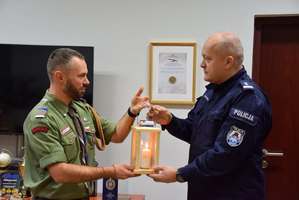 Harcerze z Betlejemskim Światłem Pokoju w Komendzie Miejskiej Policji w Krakowie