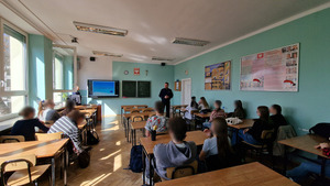 Funkcjonariusze spotkali się z uczniami VIII Liceum Ogólnokształcącego, aby przybliżyć specyfikę służby w Policji oraz zasady rekrutacji. Młodzież miała okazję poznać wymagania stawiane kandydatom oraz etapy postępowania kwalifikacyjnego.